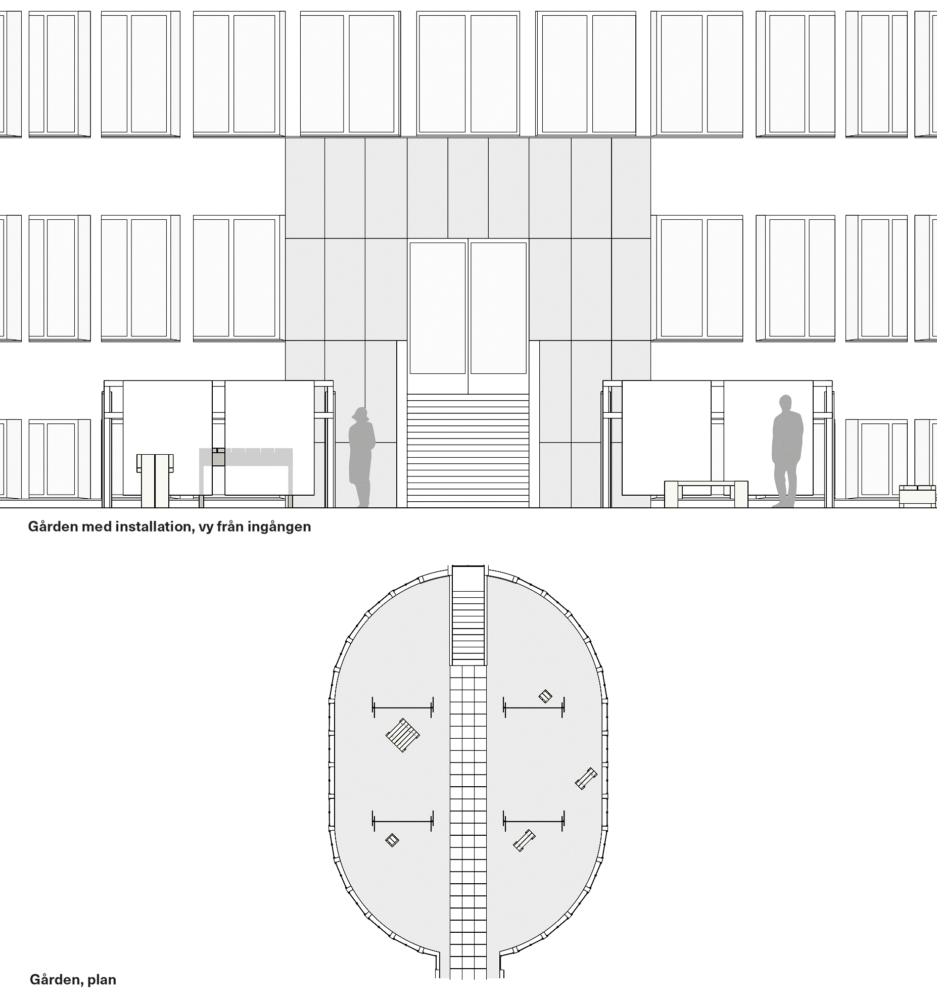 The exhibition is at the famous courtyard of the former National Insurance Institute by architect Sigurd Lewerentz. But before that, the site had a life as the small Ethnographic Museum. This was a place full of life, but also unusual in its references to other worlds. The exhibition wants to activate the history of the courtyard and what was once there, by emphasizing some its sensual and tactile qualities.